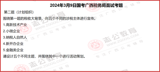 國考面試里,稅務系統(tǒng)的題目一直有個很明顯的特點,就是緊跟國家政策、貼近實際工作。尤其是2024年廣西稅務局的面試題,把這個特點體現(xiàn)得特別透徹??催@些題目,既能知道稅務工作實際需要什么樣的人、做什么樣的事,也能清楚面試到底要考察我們哪些核心能力。今天小志就帶大家了解一下,國考中稅務系統(tǒng)面試一些相關信息解讀: