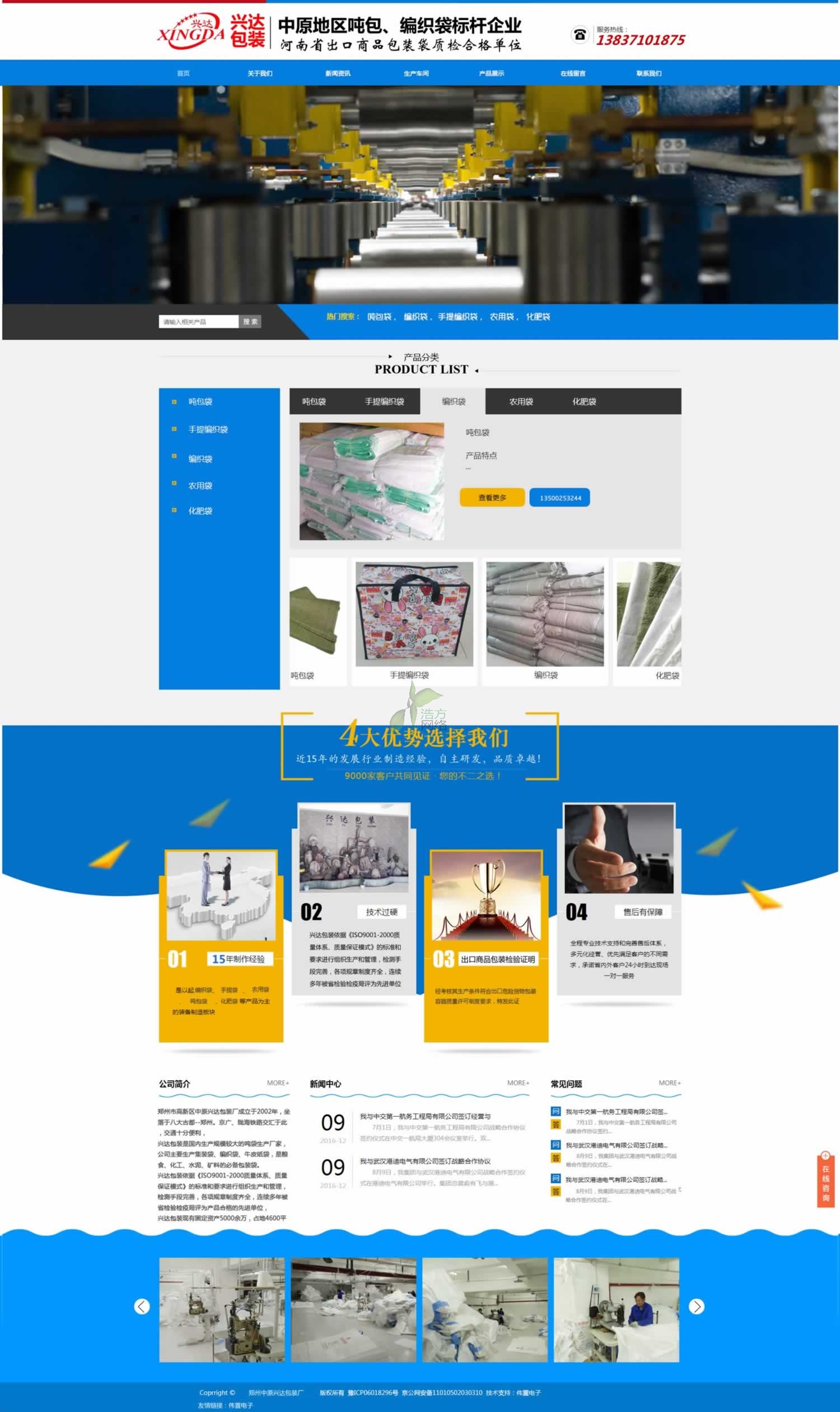 此次興達網(wǎng)站設(shè)計偉置電子采用了2種風(fēng)格來設(shè)計制作興達的網(wǎng)站,在框架上我們采用了最新的html5網(wǎng)站建設(shè)技術(shù)。興達包裝客戶最終選擇了這個藍色的版面。另外興達包裝網(wǎng)站的白酒備案用的是新網(wǎng)備案手續(xù)。在此我們也支持一下鑫盛重工機械[www.xsyjfsb.com]